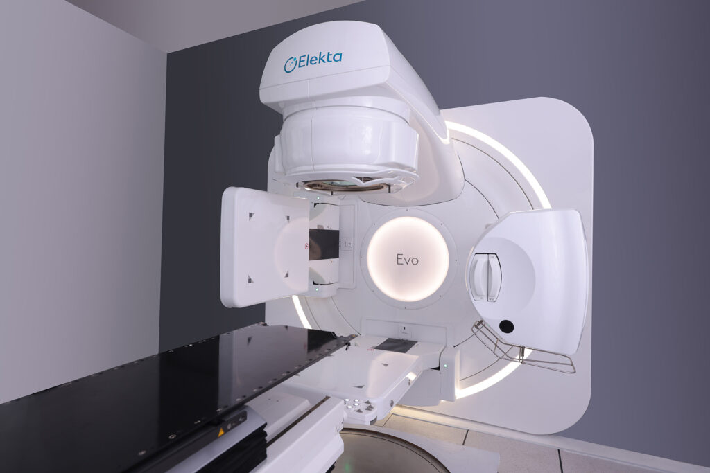 Mediante el High Dose Rate (HDRS) permite entregar dosis altas en menos tiempo, con precisión submilimétrica gracias al posicionamiento robótico 6D exclusivo del modelo Elekta Evo y Elekta Versa HD, reduciendo el número de sesiones por paciente. Además, la integración de software de planeamiento Monaco® con algoritmo Montecarlo brinda el sistema inteligente de planificación más preciso respaldado según estudios (Zouiri et al., 2021), y ahora mediante Inteligencia Artificial (IA) permite el auto contorneo con gran exactitud y rapidez mejorando los resultados clínicos, permitiendo también la adaptación del tratamiento durante cada sesión.