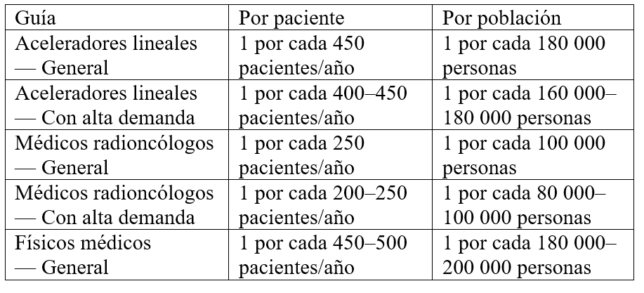 Nota: Tomado del informe Planning National Radiotherapy Services: A Practical Tool, IAEA (2011)